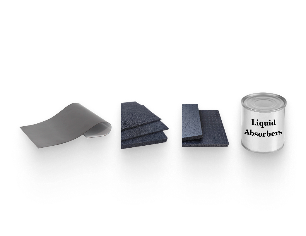 In addition to the rubber sheet type, the absorber includes a flexible urethane foam type,