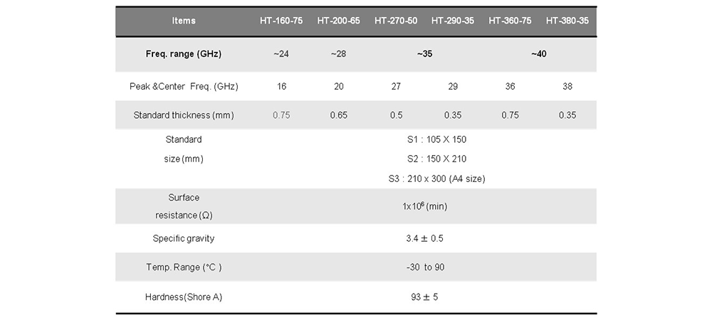 Flexible Microwave Absorber Sheet : Single Band, Peak 20 GHz, max 28 GHz, 0.65 mm