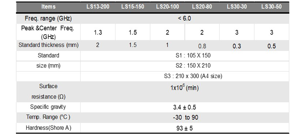 Flexible Microwave Absorber Sheet : Single Band, Peak 2 GHz, max 6 GHz, 1 mm