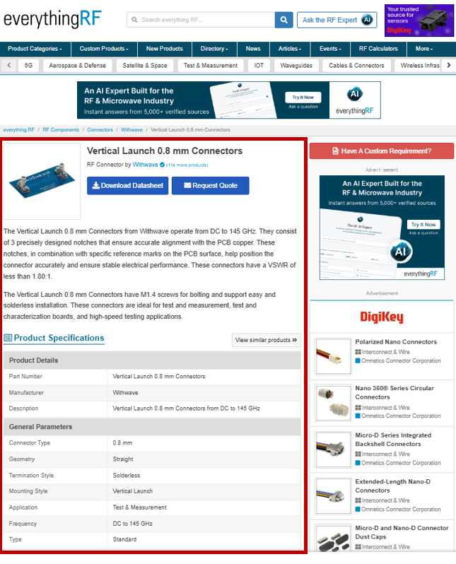 Everything RF release News “Vertical Launch 0.8 mm Connectors” on Weekly Edition. (8 Jan, 2026).