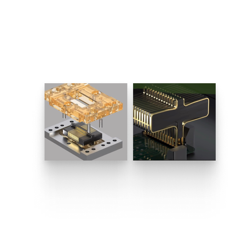WithWave’s “Hyprobe® Solution” offers press-probe and MEMS-probe sockets specifically designed for mass-production testing of Board-to-Board (BtoB) connector devices. The core of the Hyprobe sockets lies in their patented probe pin structure, featuring independently operating top and bottom beams. This innovative design ensures stable contact and guided beam movement, which ultimately leads to a high device pass rate and long life cycles.
